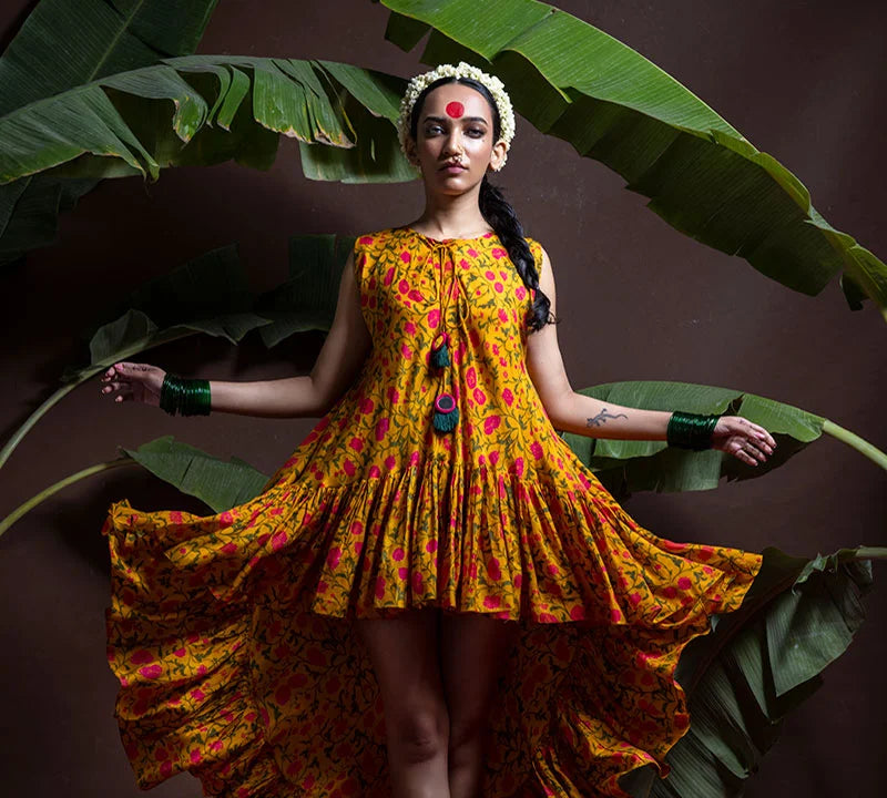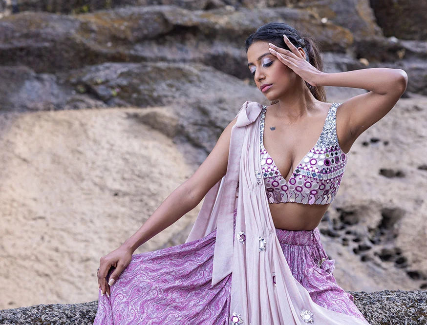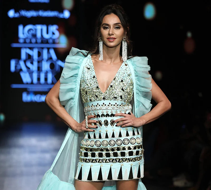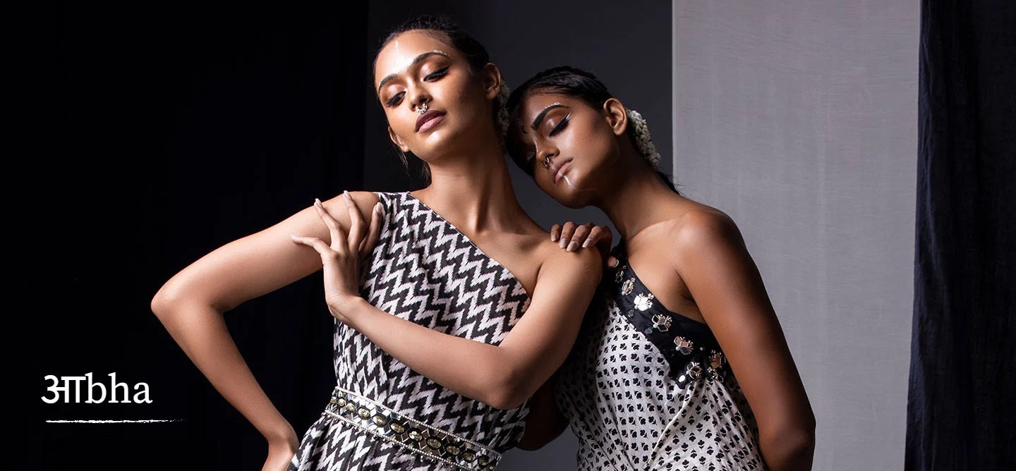 Aabha exemplifies the beauty of Indian traditions through new age patterns, regal embellishments, intricate detailing and static hues. Label Yogita Kadam’s signature drapes and quirky ensembles sun up just like some wearable art. This collection is a curation of flowy and playful silhouettes in most vibrant colours paired up with some dainty mirror work and exceptional prints making a striking statement!