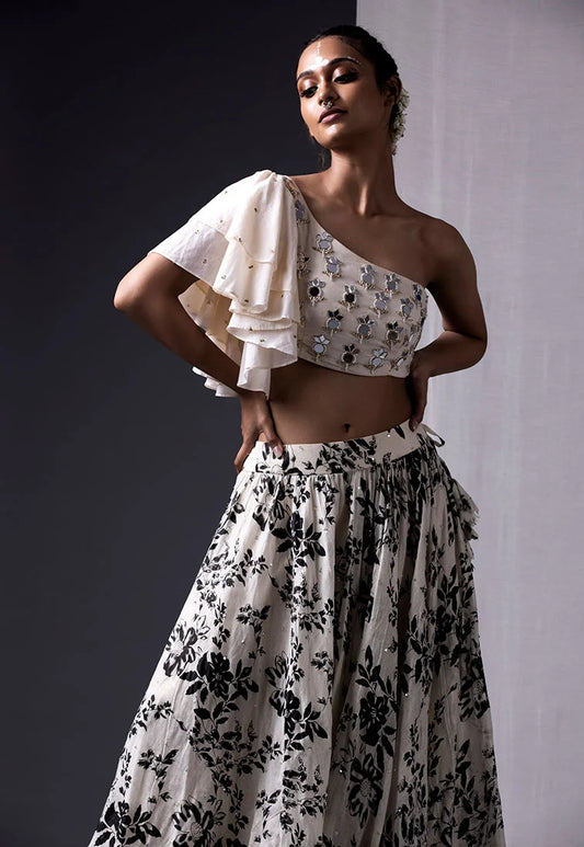 One Shoulder Crop Top & Skirt Set