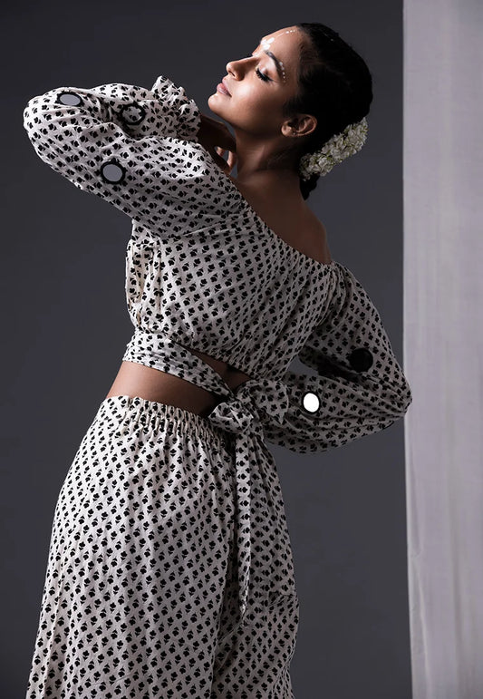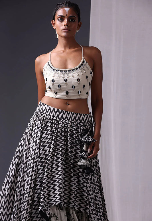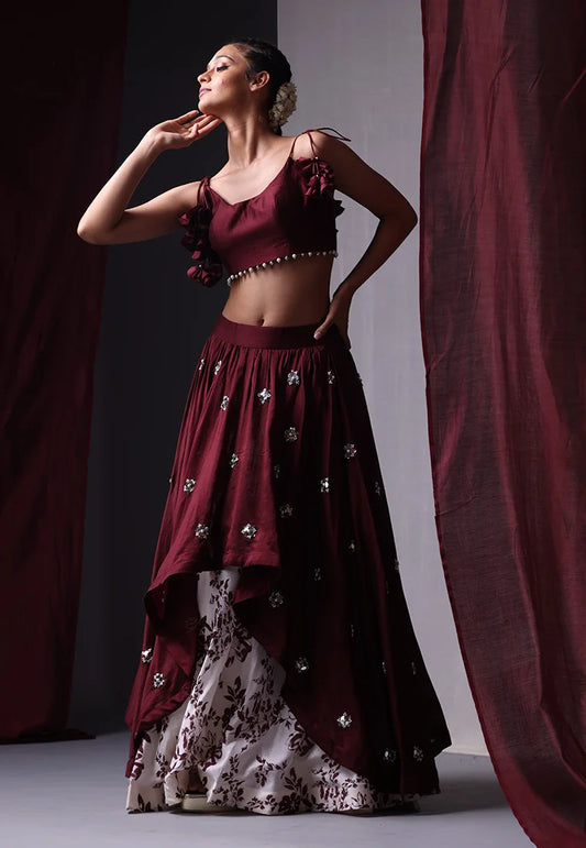 Chanderi Silk Crop Top & Skirt Set