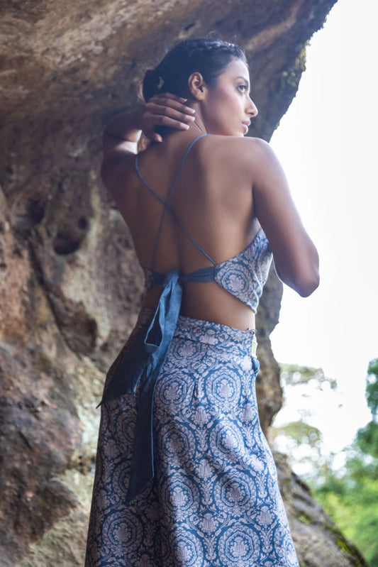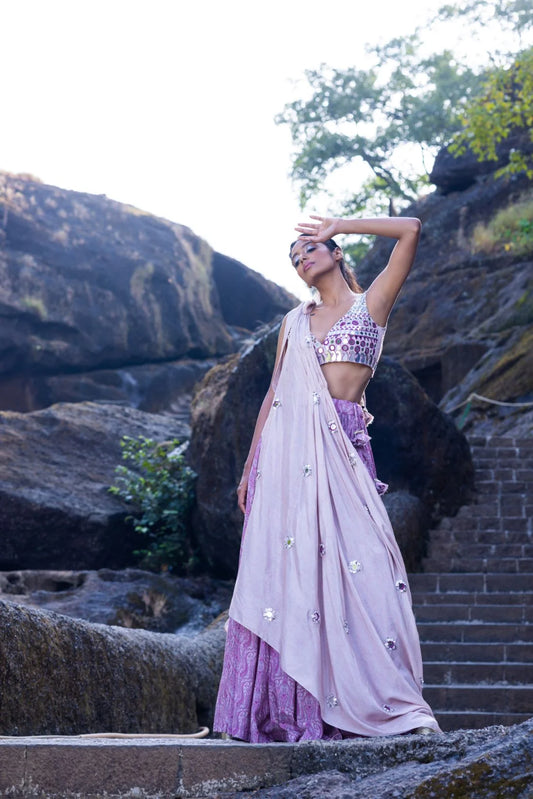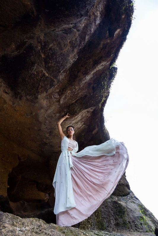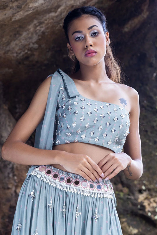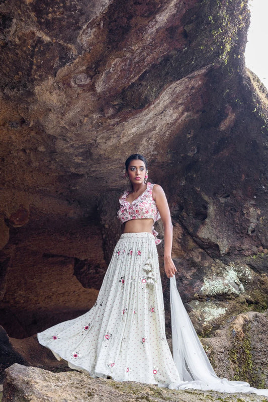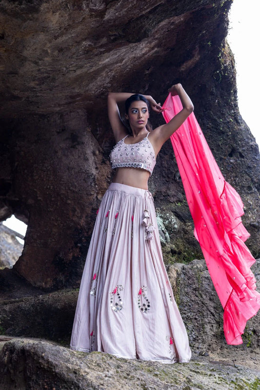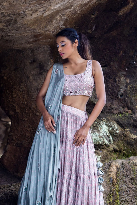 Cross back blouse with skirt and frill Dupatta