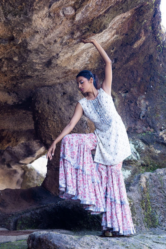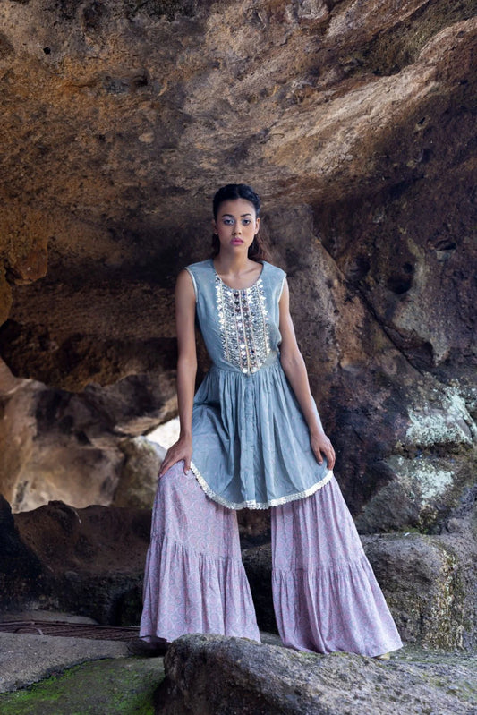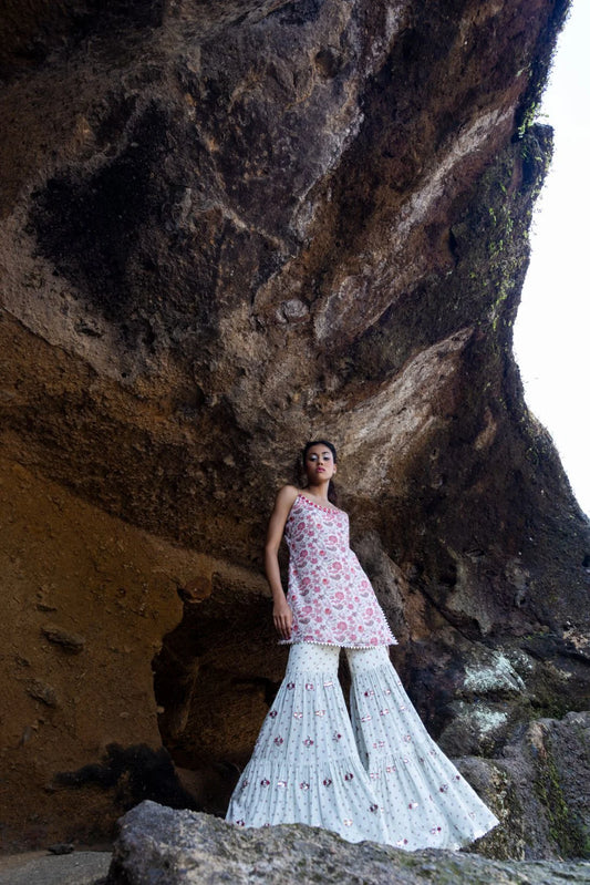 Embroidered Sharara with Noodle strap Kurti